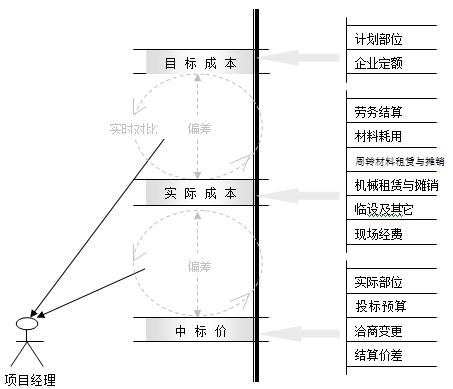 成本分析:以前项目的成本分析是一段时间才分析一次,因为它工作量比较大,涉及的部门又比较多,所以无法做到时时刻刻监控成本。现在,通过系统,项目经理随时掌握工程的成本情况。在系统中,有一项对比是计划成本与实际成本的对比,它的意义在于用计划成本对实际成本进行过程控制,如果实际成本大于计划成本,系统会自动报警,提醒项目经理分析原因,进行控制。如果项目经理想了解一下