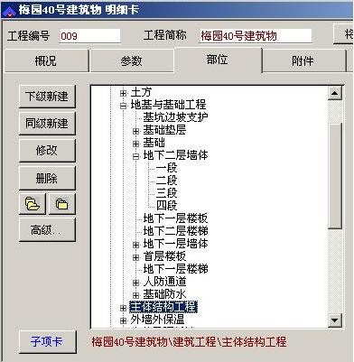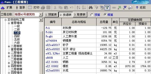 接下来的工作是结合该工程的成本控制目标及各项资源的当前市场价格来完成施工预算的编制,亦即制订此工程的目标成本,在这个软件中,预算的编制非常灵活,可以对任一分项分部进行取费计算,而且取费模板可以任意设定,