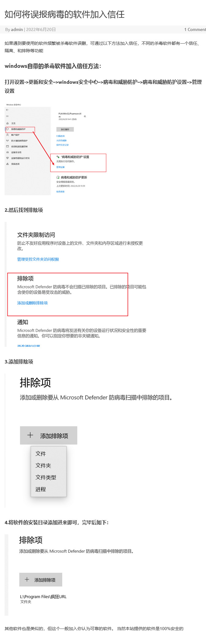 若被误报病毒,请将【下载到文件夹】加入到【排除项】中,具体参见:如何将误报病毒的软件加入信任